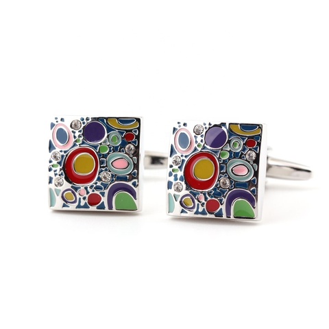 Style Vintage Laiton Matériel Forme Carrée Émail Coloré Strass Diamant Boutons De Manchette