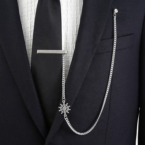 Alliage Matériau Couleur Argent Bijoux tendance Accessoires de costume pour hommes Broche Pince à cravate Chaîne