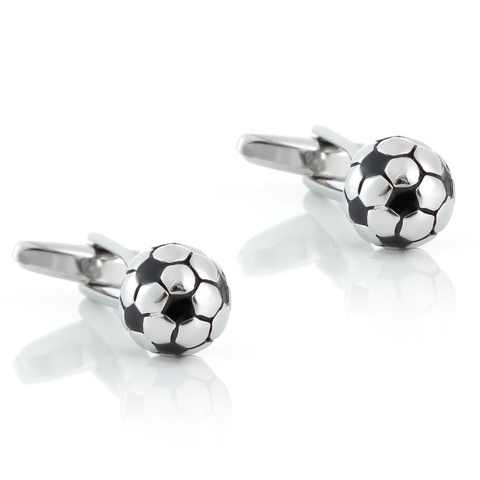 Boutons de manchette en métal en forme de football plaqué argent en laiton pour hommes