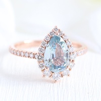Bijoux fins en acier inoxydable 14K, couleur or Rose, diadème Halo 10*7mm, coupe perle, anneau bleu aigue-marine pour mariage